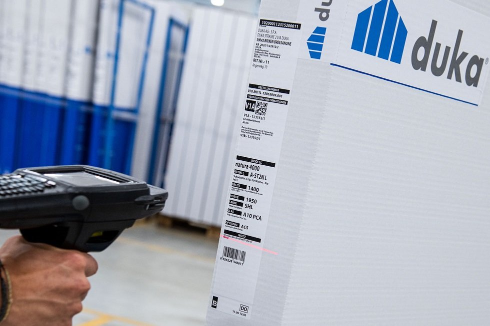 Sul lato dell'imballo in cartone si trova un'etichetta con tutte le informazioni più importanti per il vettore, il cliente e Duka stessa. Oltre all'indicazione del luogo di destinazione, si leggono anche i dati del cliente finale, del tipo di merce (a magazzino, su commissione), nonché tutte le informazioni della cabina doccia > descrizione dell'etichetta (pdf)