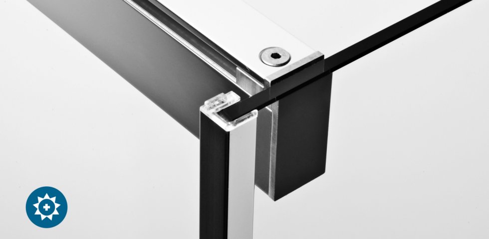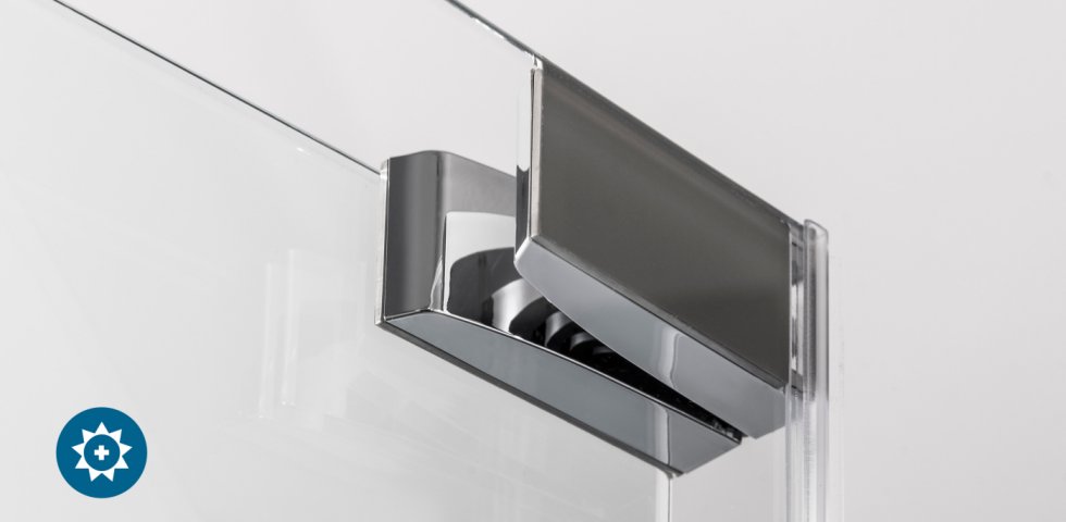 Tecnica d‘incollaggio: Questo simbolo contraddistingue gli articoli la cui cerniera viene incollata sul vetro tramite il comprovato sistema di incollaggio UV duka. Con questa tecnologia, la totale assenza di fori o incavi rende la superficie interna del vetro completamente liscia. Ciò facilita la cura della cabina doccia e ne esalta l‘estetica.