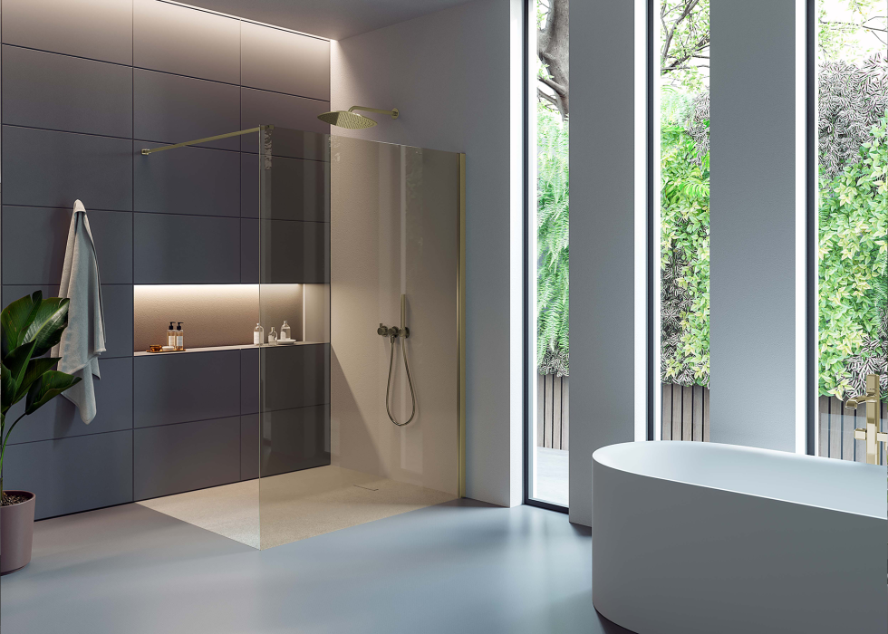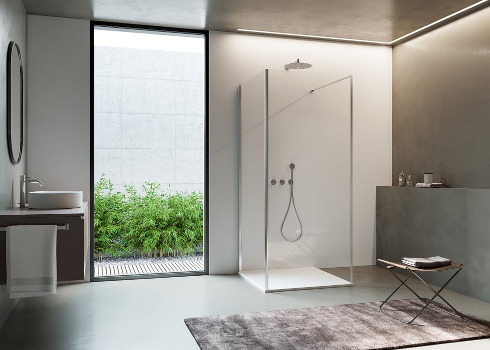 Die Modellreihe libero 3000 bietet eine Reihe eigenständiger Lösungen mit eleganter Ästhetik, geprägt von schwarzen, geometrischen Mustern im Industrial-Stil und den neuen Pearl-Farben. Diese Linie ermöglicht maximale Flexibilität bei der Gestaltung von Walk In Umgebungen mit sicheren, zuverlässigen Qualitätsprodukten.