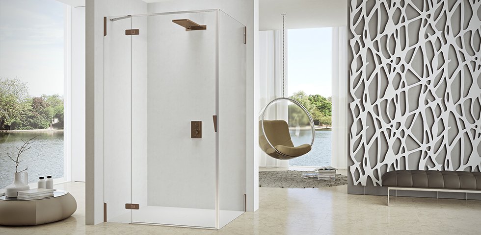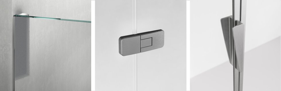The new colours are available for the pura 5000 models with and without wall profile. The profiles of the shower enclosure are in silver high polish and now also in stainless steel look INO available. On the models without profile there is a short silk screen print on the glass that matches the colour of the hinges and handles.