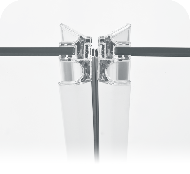 The adjustable support of the fixed elements or side panels guarantees a high stability and is easy to install.