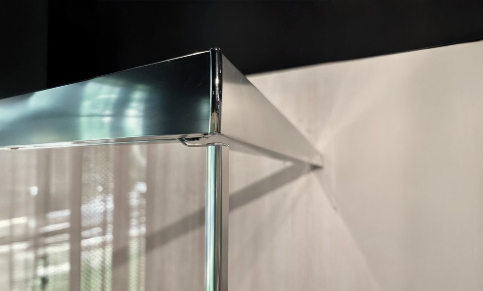 The new upper horizontal profile and support bar integrate seamlessly with the rounded corner of the enclosure, accented by an oblique trim detail that adds a refined, distinctive touch.