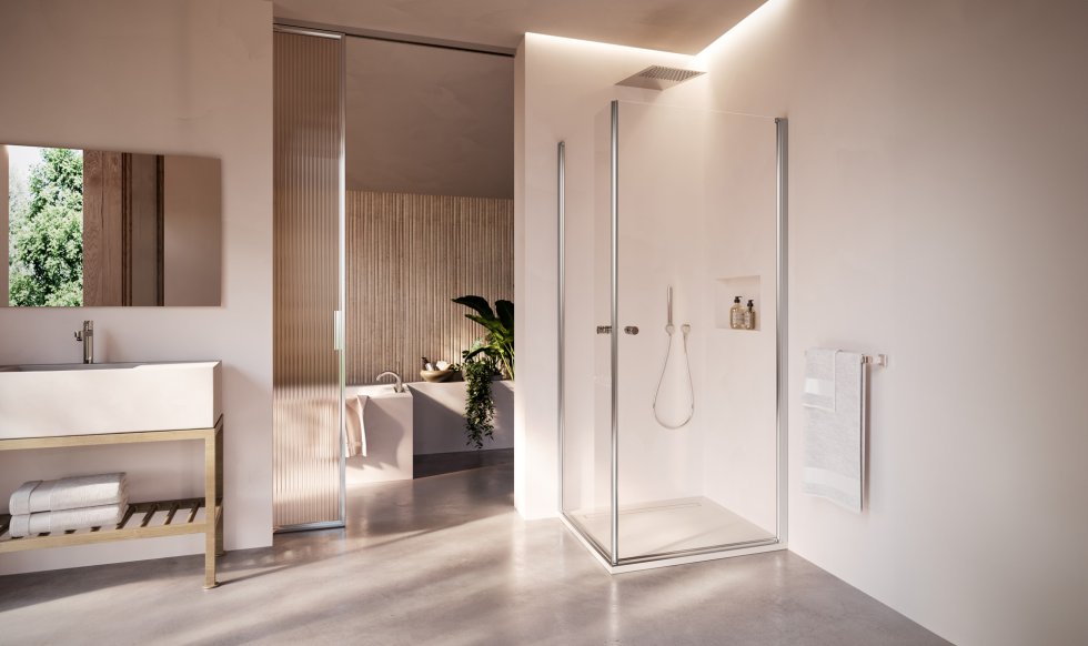 El tirador estándar de aluminio se convierte en un nuevo punto de seducción. Su nuevo diseño desencadena una íntima percepción tanto táctil como visual, trazando con firmeza el camino del diseño moderno. Sus rebajes acompañan al tirador con una naturalidad sin precedentes y añaden un toque de clase a la mampara de ducha.