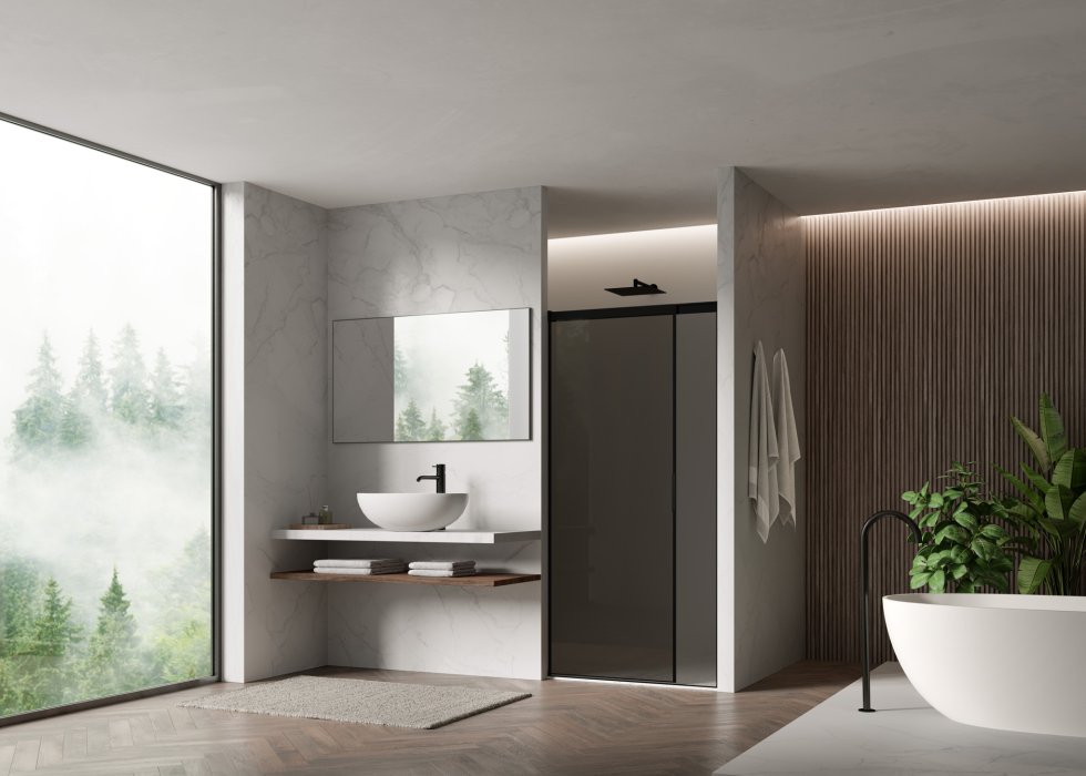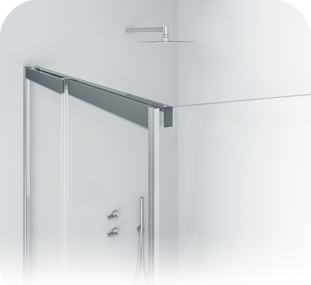 En la nueva acqua 5000, la versión angular no necesita ningún soporte de fijación al techo. En los modelos con una anchura a partir de 1021 mm, la cabina cuenta con un perfilado en el vidrio del elemento fijo para garantizar su estabilidad. La nueva forma redondeada mejora la armonía con la estética sencilla del conjunto.