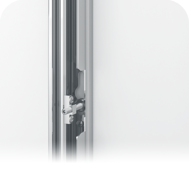 Las ruedas de deslizamiento, con rodamientos de bolas ajustables en altura, también están ocultas en el perfil de deslizamiento horizontal para que puedan deslizarse fácilmente y sin obstáculos por su riel. La posibilidad de regular la altura permite adaptar la cabina de ducha a cualquier tolerancia de construcción durante el proceso de instalación.