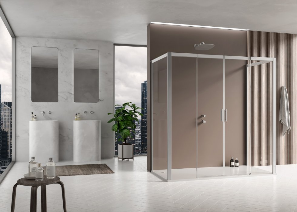 Para no romper con el aspecto estético armonioso de la cabina de ducha acqua 5000, durante la fase de diseño se ha eliminado cualquier solapamiento de los vidrios entre los elementos fijos y los deslizantes. Esto evita la acumulación de residuos, lo que a su vez facilita y acelera el proceso de limpieza.