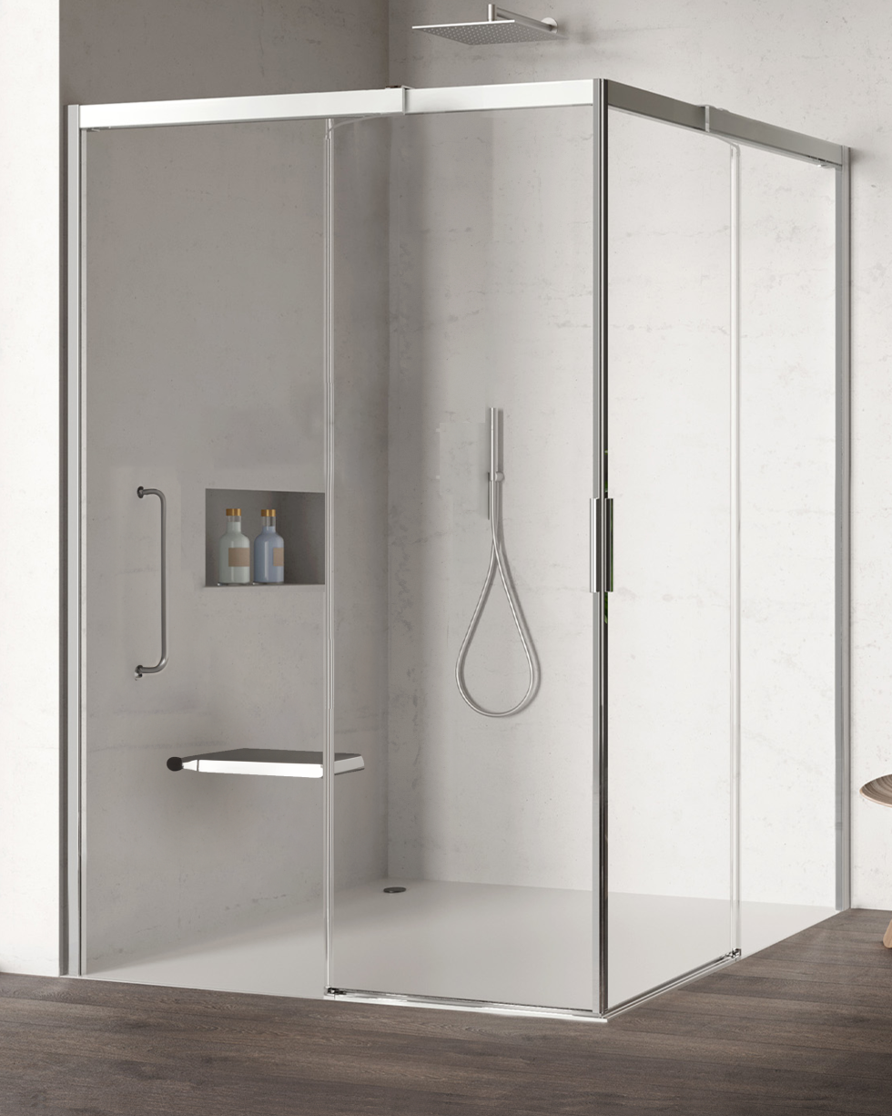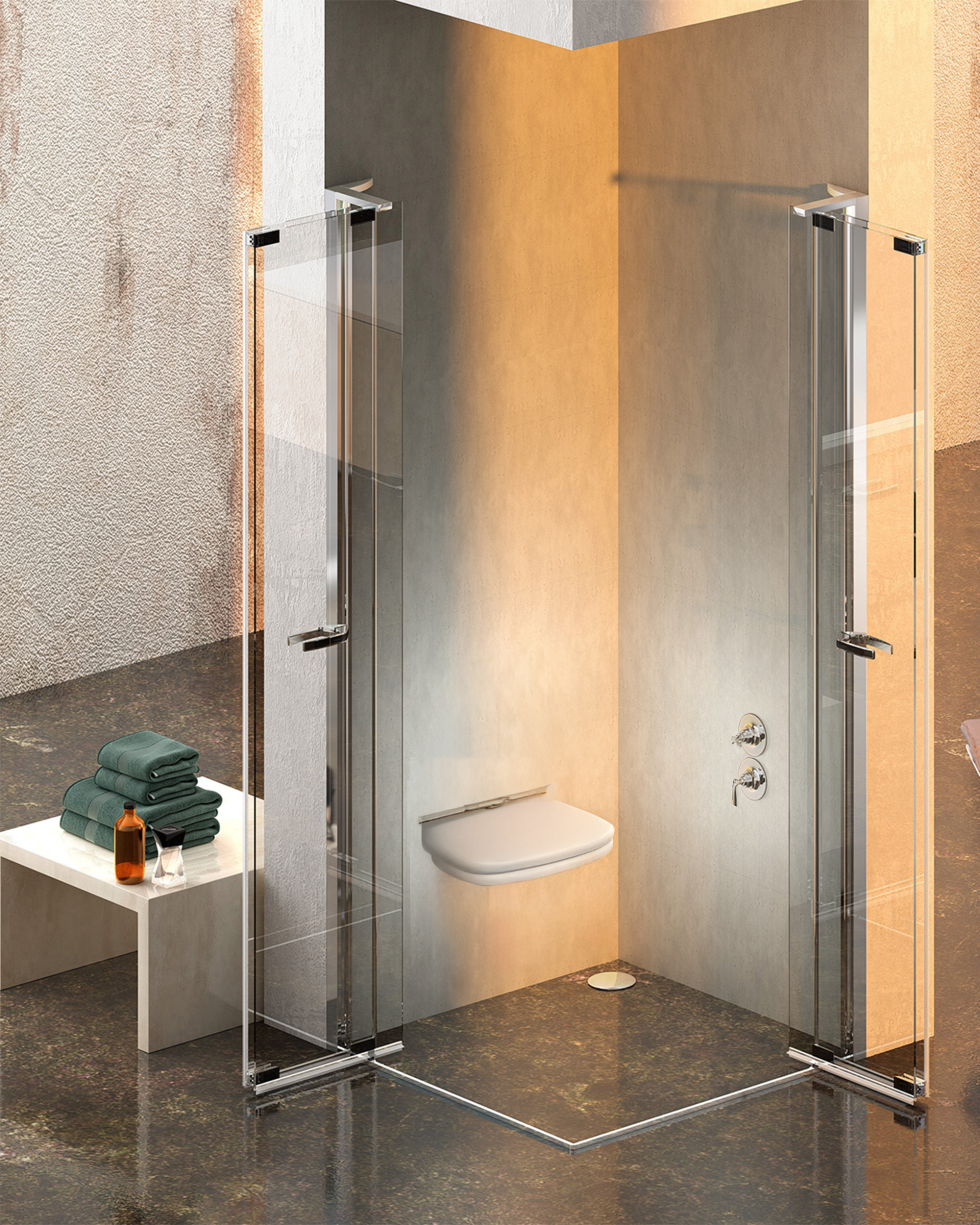 Le soluzioni Walk In consentono un accesso facile e aperto alla zona doccia. Oltre ai classici elementi laterali a sé stanti offriamo nuove e innovative porte a sé stanti (porte a battente, porte a soffietto battente e porte scorrevoli) che dopo la doccia restituiscono al bagno il suo spazio.