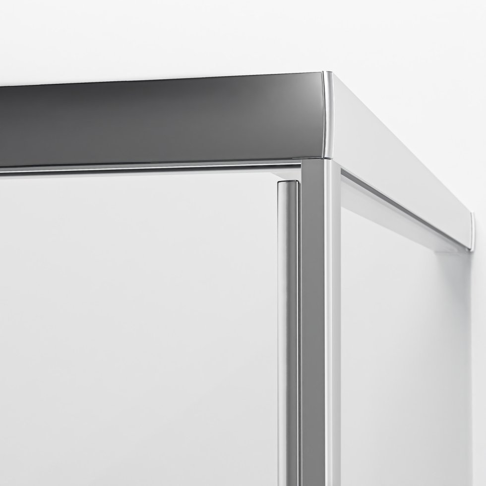 Il nuovo profilo orizzontale superiore dell'elemento laterale diventa un forte punto di attrazione in grado di attribuire un nuovo senso di continuità e armonia all’intero box doccia.