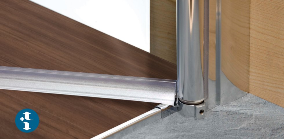 Como añadido a las propiedades del mecanismo auto elevable, para estas colecciones también es posible elegir el comportamiento de cierre del elemento batiente, determinando libremente el punto de activación.