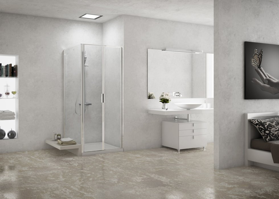 Chevauchement minimal du verre et absence de profilé vertical rend la cabine encore plus transparente.