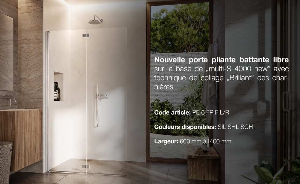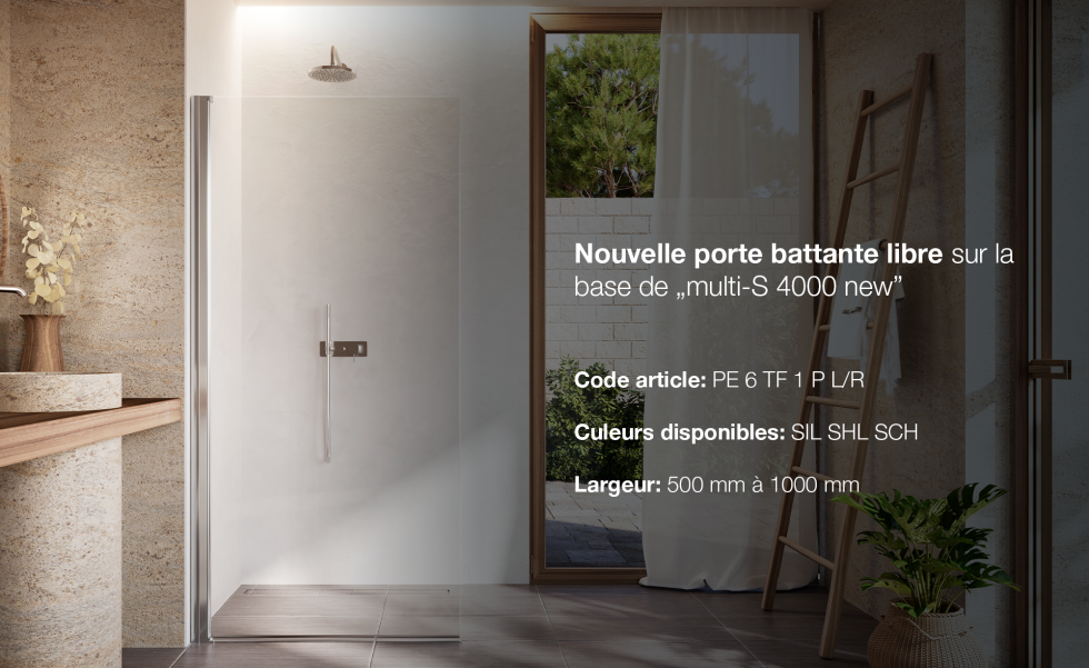 Le lancement de la nouvelle multi-S 4000 a inspiré le renouvellement de la série de modèles libero 4000, qui connaît un grand succès. Grâce à un minimalisme accru et à une fonctionnalité élargie, la série libero 4000 a été complétée par des solutions de douche ouvertes, qui se présentent de manière moderne, élégante et polyvalente dans la salle de bains.
