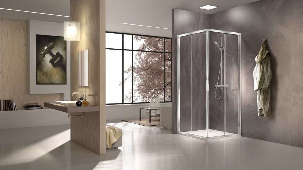 Les deux systèmes, coulissant et pliant-battant, sont déclinés en solutions d’angle, en niche, à trois côtés ou en quart de rond, réalisés en verre trempé de sécurité 6 mm d’épaisseur, en version transparente A10, cincilla C10, ou avec sérigraphie céramique centrale TS10 et avec profilés en aluminium de grande qualité dans les coloris argent mat SIL, argent brillant SHL ou blanc BCO. En tant que spécialiste du “sur mesure” Duka crée des solutions personnalisées qui se distinguent pour leur technique et leur esthétique.