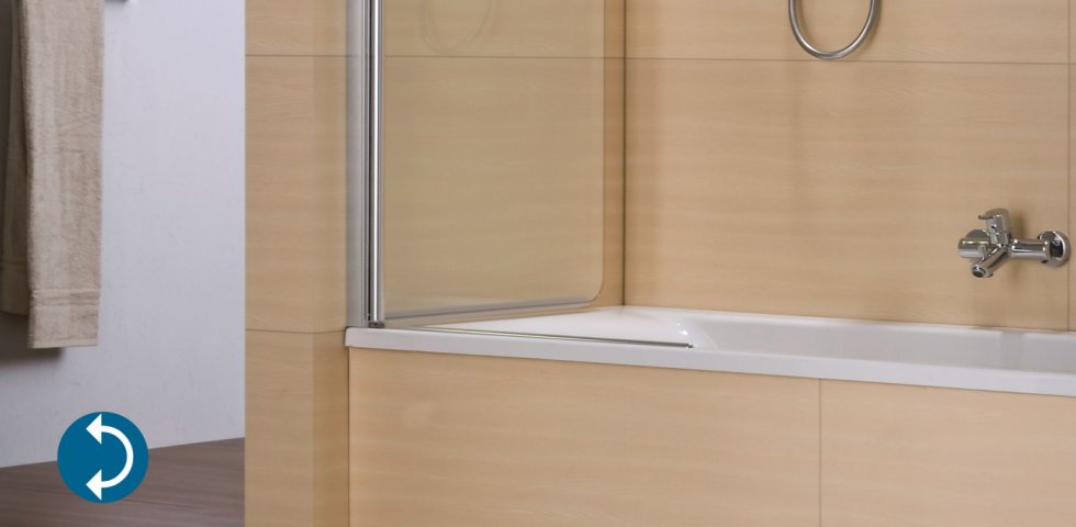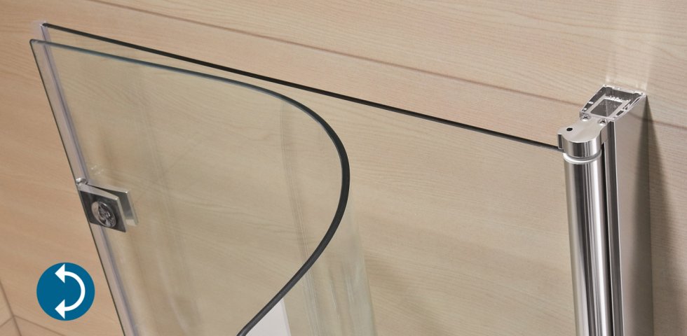 Charnière à 180° . La charnière à 180 degrés offre confort maximal et liberté de mouvement: la cabine de douche peut être complètement ouverte à l'intérieur et à l'extérieur. Ca permet une entrée avec le maximum de confort et de liberté de mouvement.