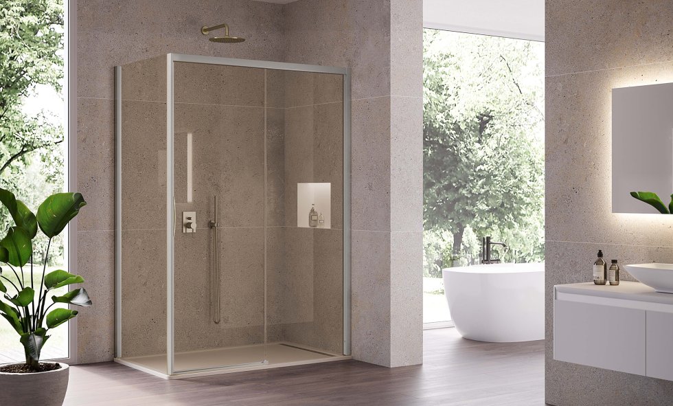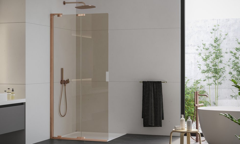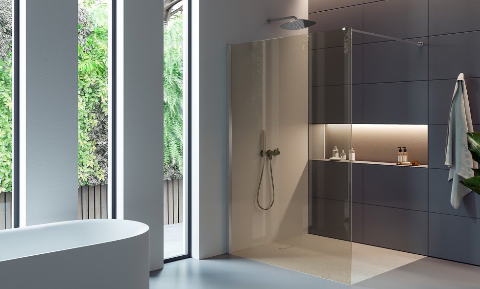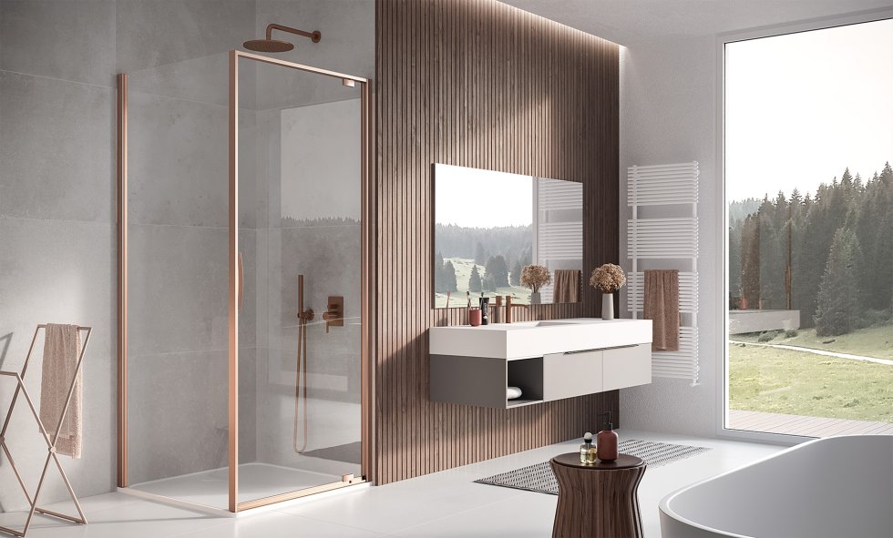 Tra le molteplici finiture disponibili, il nuovo vetro Bronze si distingue per la sua tonalità calda e intensa, capace di creare un’atmosfera accogliente e rilassante all’interno della stanza da bagno. Oltre alla grande resa estetica, il nuovo cristallo offre una maggiore sensazione di privacy rispetto al classico vetro trasparente. L'effetto visivo è reso ancora più straordinario quando abbinato a profili declinati nei colori pearl o alla finitura look acciaio inox, effetto che dona allo spazio bagno un'estetica ancora più ricercata e contemporanea.