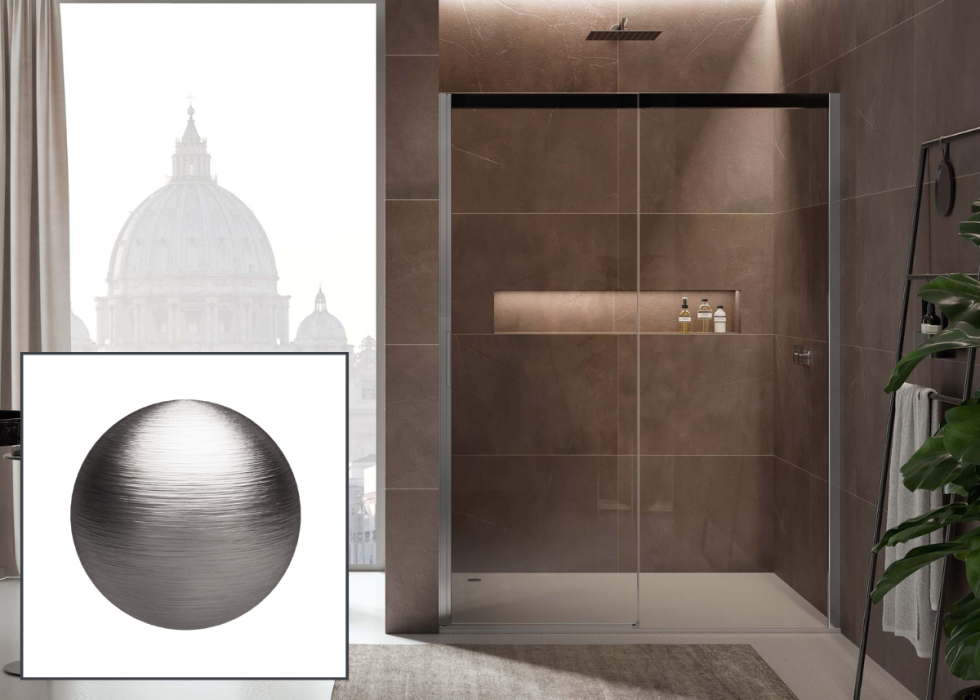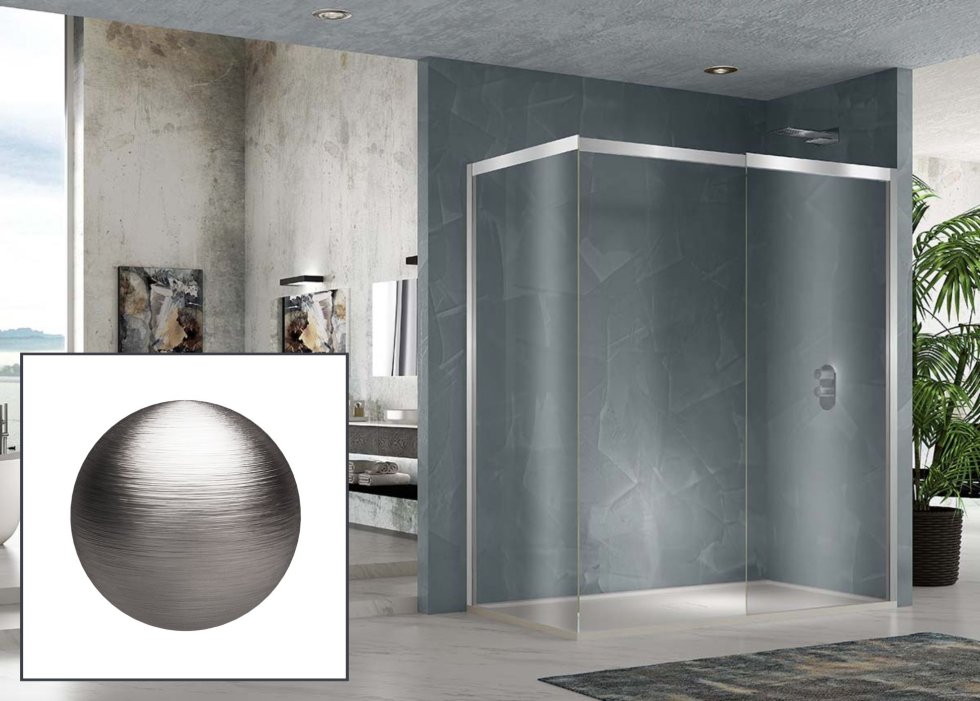 Se sei alla ricerca di un look moderno per il tuo bagno la finitura in look acciaio inox è la tua scelta migliore. Questa finitura è sempre più popolare sul mercato e soddisferà le tue esigenze estetiche. La tipica testure spazzolata che ne riga impercettibilmente la superficie crea un effetto caldo e piacevole che si contrappone alla trasparenza e la brillantezza del vetro per creare un effetto visivo originale e semplice allo stesso tempo. La sua semplice estetica le permette di essere facilmente abbinata ai colori dello spazio conferendo così un tocco di modernità ad ogni ambiente bagno.