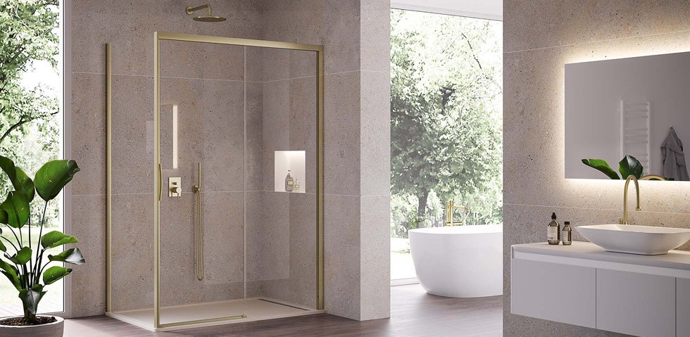 I profili, le maniglie, le cerniere e altre componenti strutturali si trasformano in eleganti dettagli decorativi grazie alle nuove e brillanti finiture metalliche copper pearl, brass pearl e black pearl; le cabine doccia diventano, così, ‘superfici’ sempre più personalizzabili, da declinare in diverse configurazioni a seconda dello spazio - domestico, wellness o dell’hotellerie - che le accoglie e rispondere alle differenti esigenze abitative e gusti individuali.