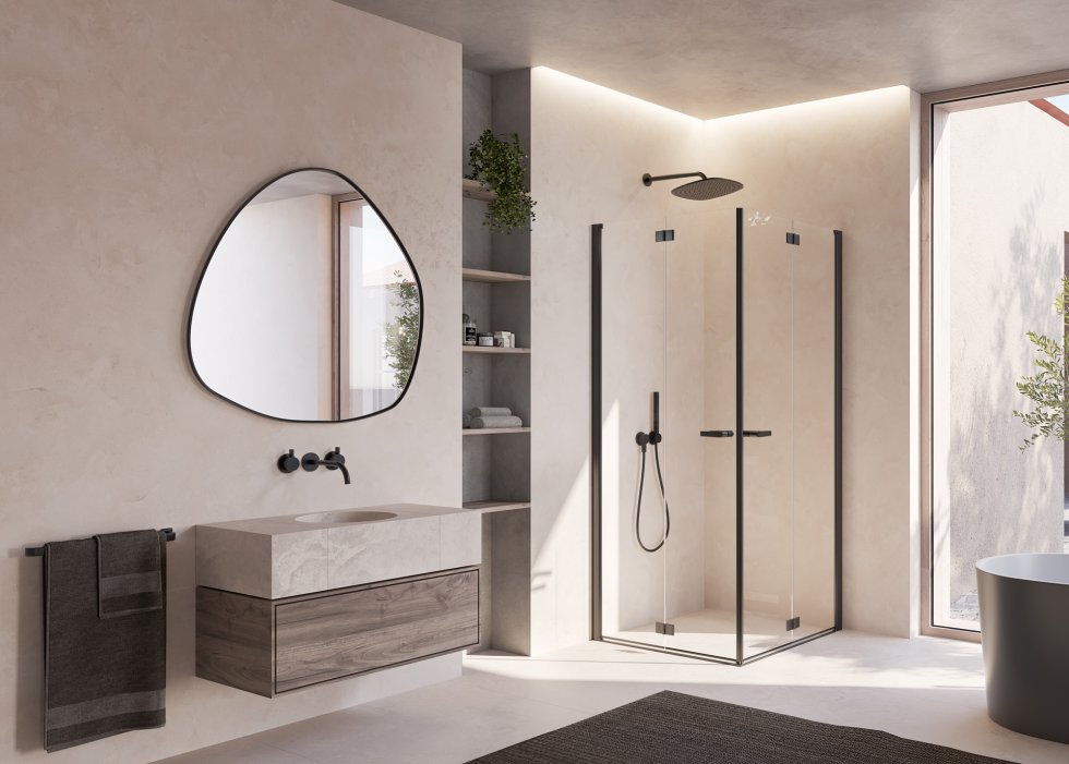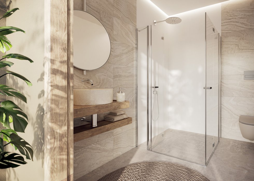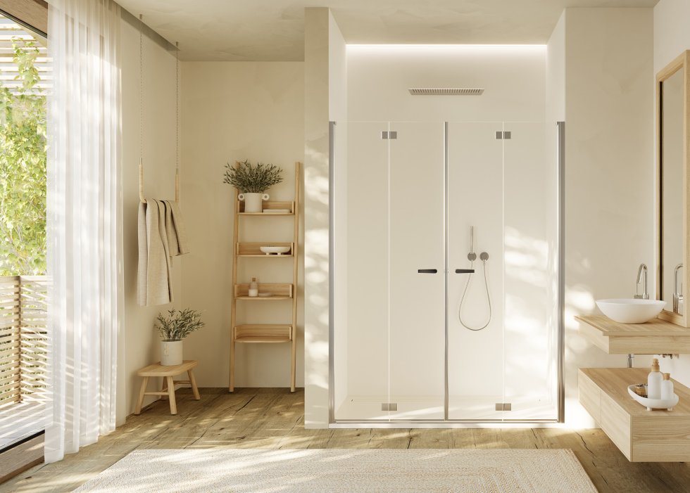 La barra di sostegno, ora senza viti in vista, si trasforma nell’aspetto avvolgendo il vetro e il muro con una forza che emana sicurezza. Inoltre la barra è a filo con l‘altezza della cabina, per cui la piastrellatura all‘altezza della cabina non costituisce un ostacolo a un‘installazione semplice e facile.