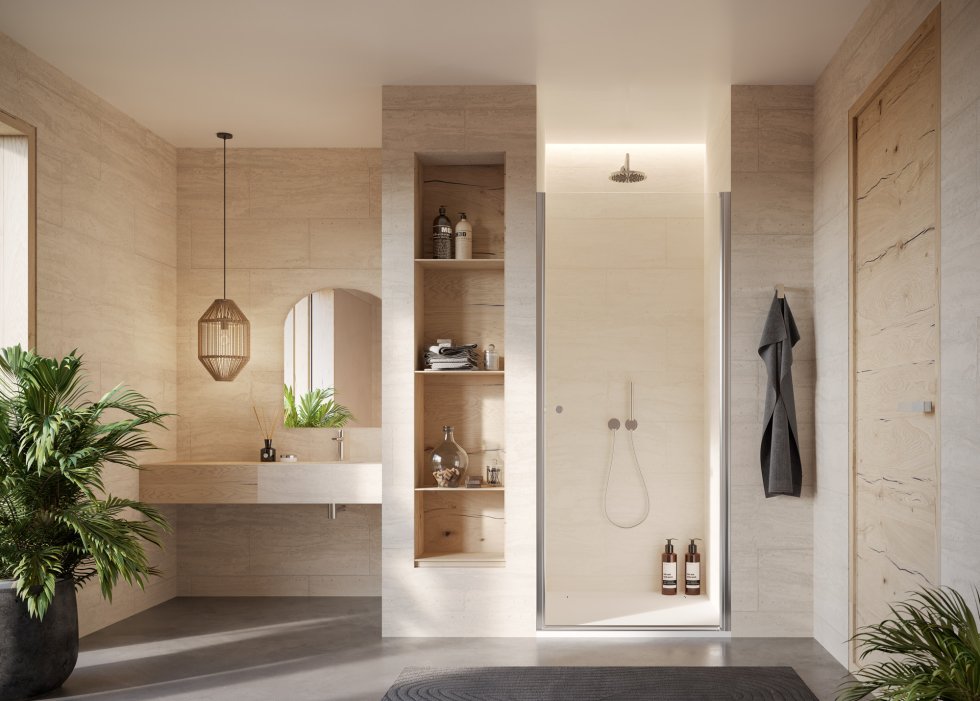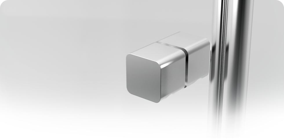 La cerniera dal design tubiforme è stata ridotta al minimo lasciando che la trasparenza del vetro sia protagonista della scena visiva. Minimal nell’aspetto ma grande nella funzionalità: l’auto-close regola a piacere l’apertura e la chiusura dell’elemento a battente permettendo di posizionarsi esattamente laddove tu vuoi.