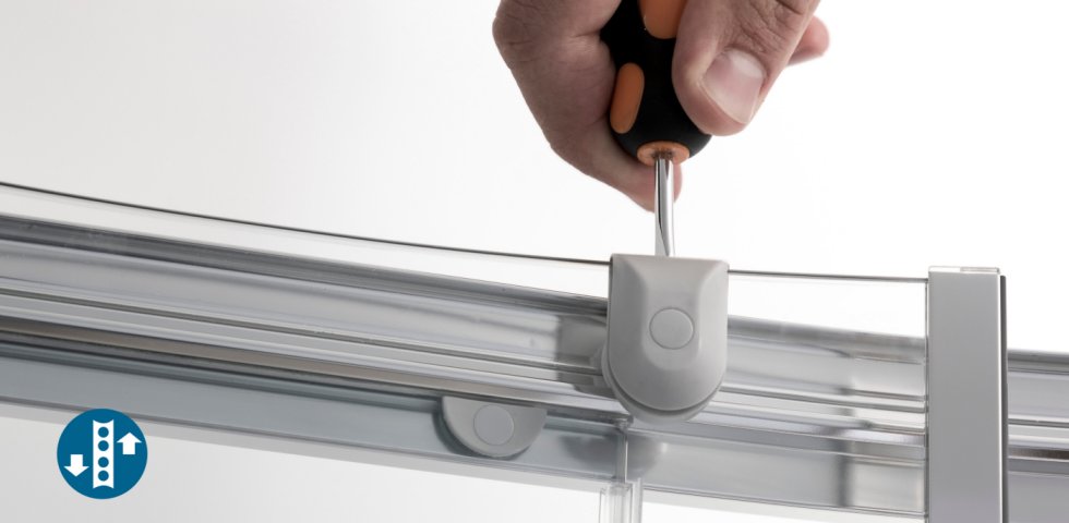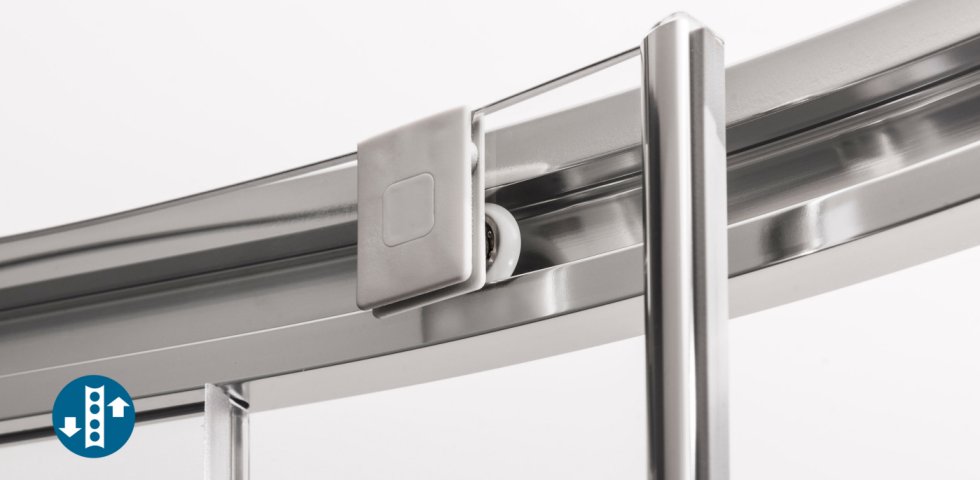 Kogelgelagerde looprollen. De schuifelementen van de douches met dit icoon zijn uitgerust met in hoogte verstelbare, kogelgelagerde rollen. Deze garanderen dat de deuren perfect en geruisloos glijden. De Duka kogellagers hebben door hun ontwerp geen uitgebreide smering nodig en hebben uitstekende loopeigenschappen. Door de rollagertechniek wordt de wrijving tot een minimum beperkt, waardoor de rollen grotendeels slijtagevrij zijn.