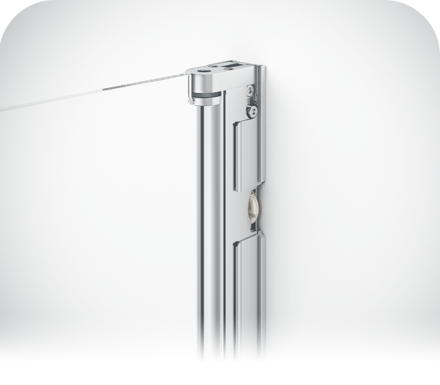 Cylindryczny zawias rurowy został zredukowany do minimum, dzięki czemu przejrzystość szkła zajmuje centralne miejsce. Minimalistyczny wygląd, doskonała funkcjonalność: sprawdzony system automatycznego domykania "auto close" pozwala elementom obrotowym zatrzasnąć się dokładnie tam, gdzie jest to wymagane.