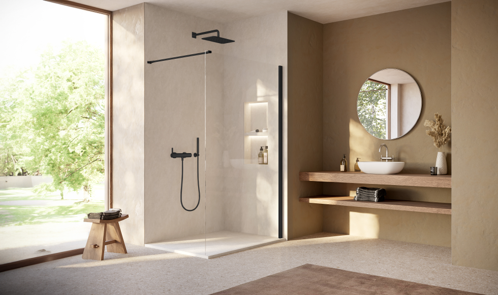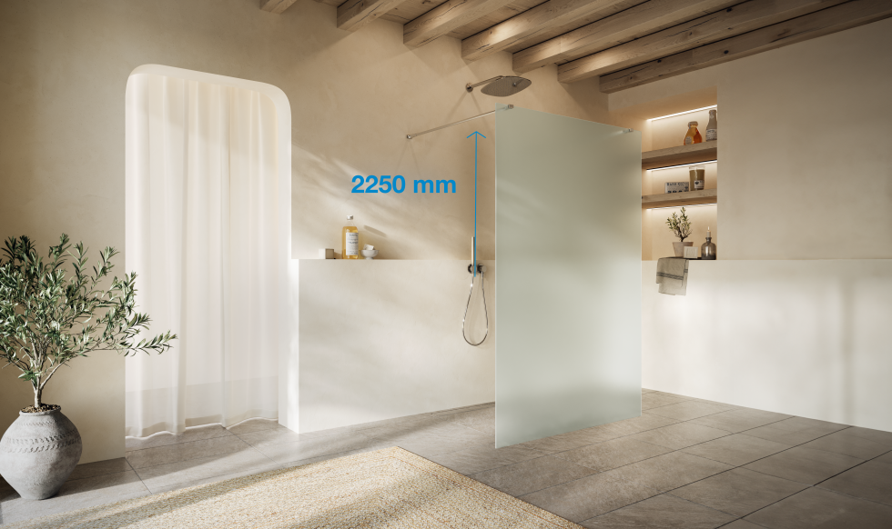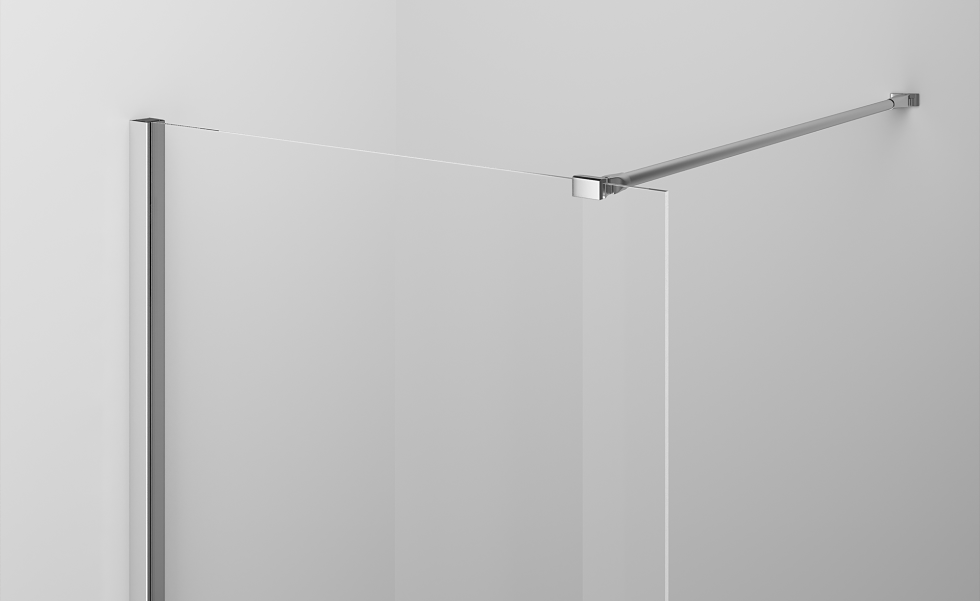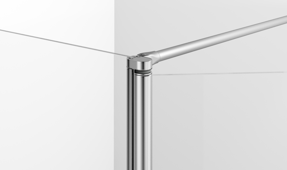 The innovative support bar aligns exactly to the height of the shower enclosure and allows for easy installation. Additionally, the elegant and pure design of the aluminium profiles enhances the brilliant glass surface and emphasizes the sense of space. The slim side of the profile faces outward for an even more minimalist look and for a maximized shower area. The profile maintains its aesthetic silhouette and also offers a generous adjustment range.