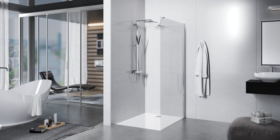 Mirror-effect chrome glass is now available for our corner entrance with swing door models in the natura 4000 and the libero 4000 lines, offering you a unique experience of space and shower. The chrome finish, essentially stainless steel, is applied to the outer side of the shower panel, does not impact on technical performance and retains a slight transparency which varies according to the brightness of the surroundings, transforming the glass into an architectural feature which adds to the illusion of space and creates an interplay with other bathroom fittings and furnishings. A unique solution, adding a whole new dimension to the role of a shower cabinet.
