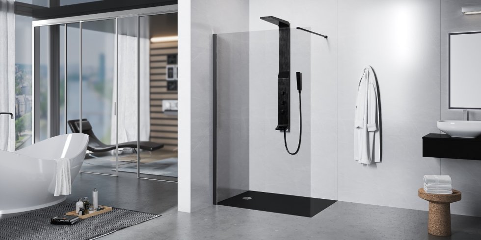 6 mm / 8 mm Glass thickness | 2000 mm Standard height | A new line to round off duka’s price-segmented product range. libero 3000 offers an array of stand-alone solutions with a strong focus on aesthetics, featuring black geometric silkscreen print in line with the latest trends in both colour and “industrial style.” The line offers maximum versatility in creating walk-in spaces with top-quality, safe, reliable products.