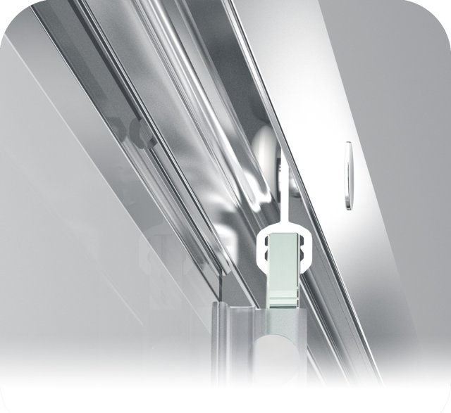 Раздвижные элементы можно отцепить посредством простого нажатия на нижние направляющие, что дает возможность легко очистить элементы даже между стекол.