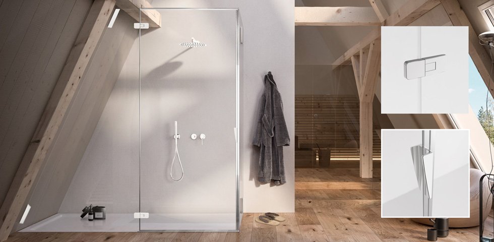The new colours are available for the pura 5000 models with and without wall profile. The profiles of the shower enclosure are in silver high polish. On the models without profile there is a short silk screen print on the glass that matches the colour of the hinges and handles.