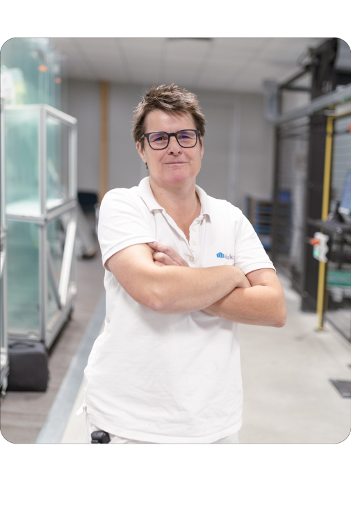 Angelika, Abteilungsleiterin UV-Verklebung, stellt sich vor