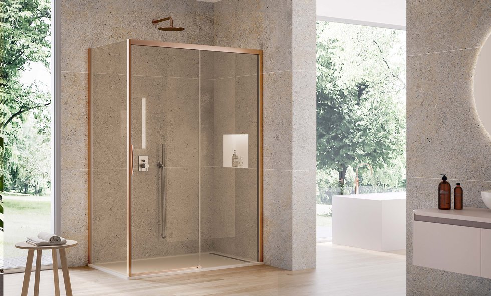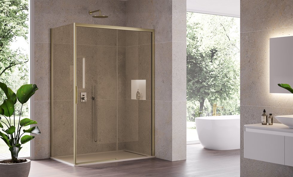 Die Serie umfasst eine Vielzahl an Glasvarianten – darunter jetzt auch unser innovatives Bronze Glas. Das neue Bronze Glas besticht durch seinen warmen, erdigen Farbton, der eine einladende und entspannende Atmosphäre im Badezimmer schafft. Es ermöglicht eine individuelle Gestaltung und bietet im Vergleich zu transparentem Glas ein höheres Maß an Privatsphäre. In Kombination mit den Pearl Farben oder der Edelstahloptik unserer Profiloberflächen, wird das Bronze Glas zu einem ästhetischen Highlight in Ihrem Bad.