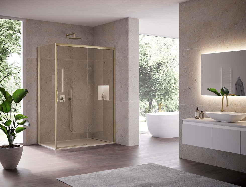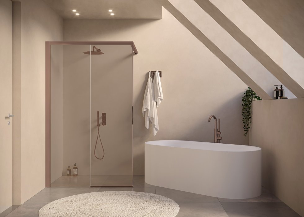 Die Serie umfasst eine Vielzahl an Glasvarianten – darunter jetzt auch unser innovatives Bronze Glas. Das neue Bronze Glas besticht durch seinen warmen, erdigen Farbton, der eine einladende und entspannende Atmosphäre im Badezimmer schafft. Es ermöglicht eine individuelle Gestaltung und bietet im Vergleich zu transparentem Glas ein höheres Maß an Privatsphäre. In Kombination mit den Pearl-Farben oder der Edelstahloptik unserer Profiloberflächen, wird das Bronze Glas zu einem ästhetischen Highlight in Ihrem Bad.