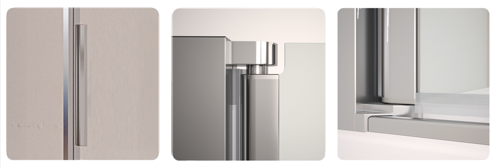 - Bei Kabinen mit Seitenwand sorgt eine horizontale Stütze über der Tür für hervorragende Stabilität – dezent und perfekt im Einklang mit dem neuen Designkonzept.